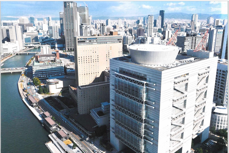 大阪国際会議場は抽象『グランキューブ大阪』と言っています。淀川支流の中之島に