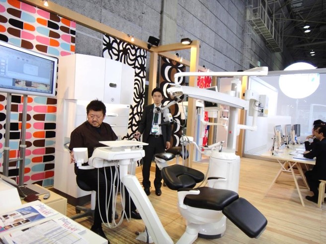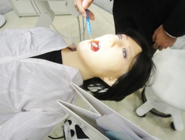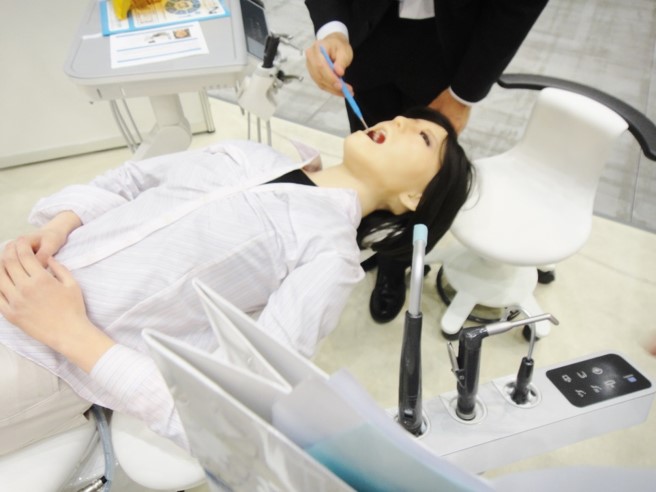 歯科ユニットで治療を受けているのは、なんと A I (人型ロボット)です!